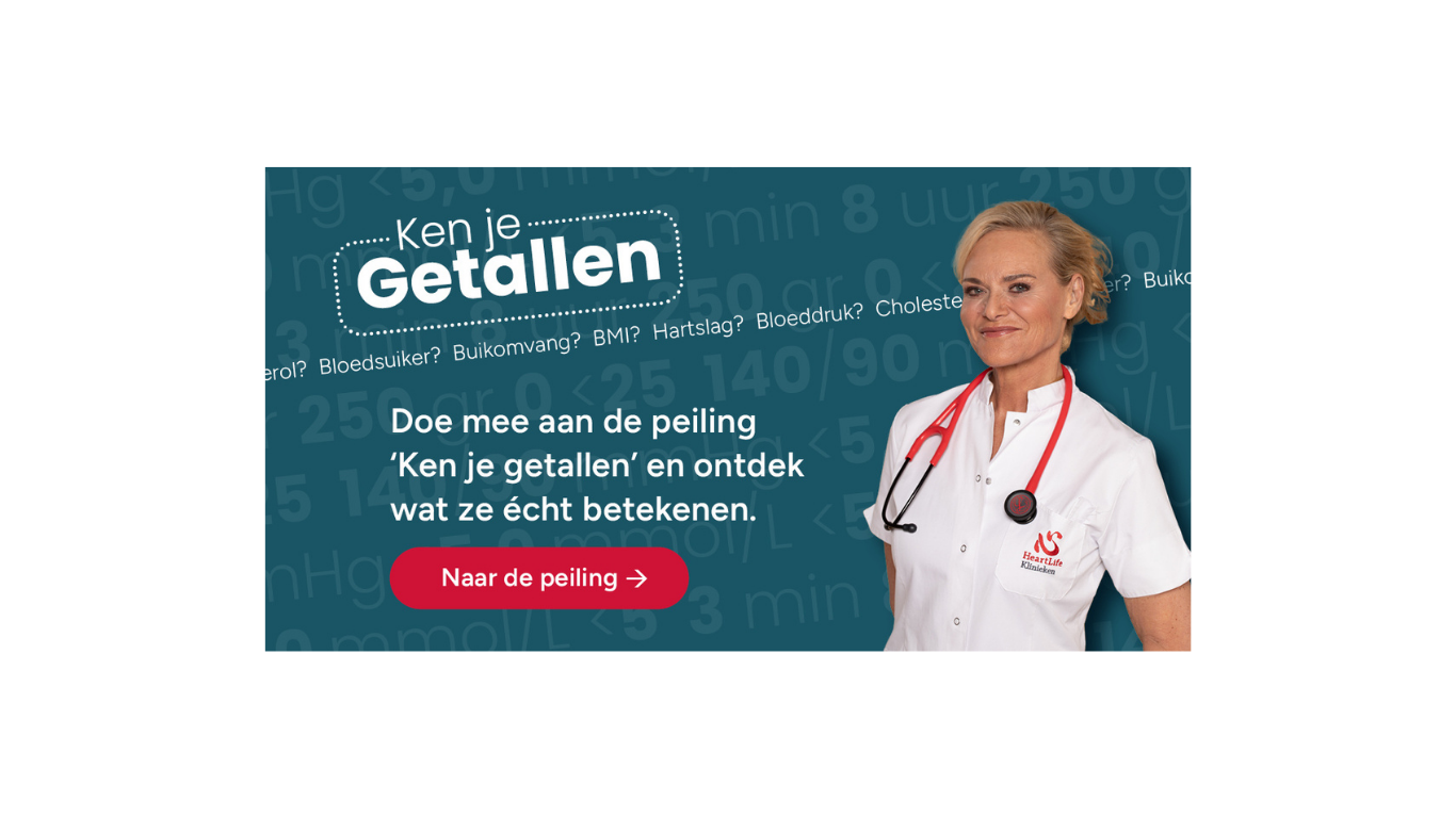 In deze korte, anonieme peiling (±10 minuten) krijg je meer inzicht in de betekenis van deze getallen. Met heldere uitleg en praktische tips! Geen beoordeling, wel meer inzicht in je hartgezondheid. Doe mee, leer meer over je getallen en geef je hartgezondheid een kleine voorsprong.